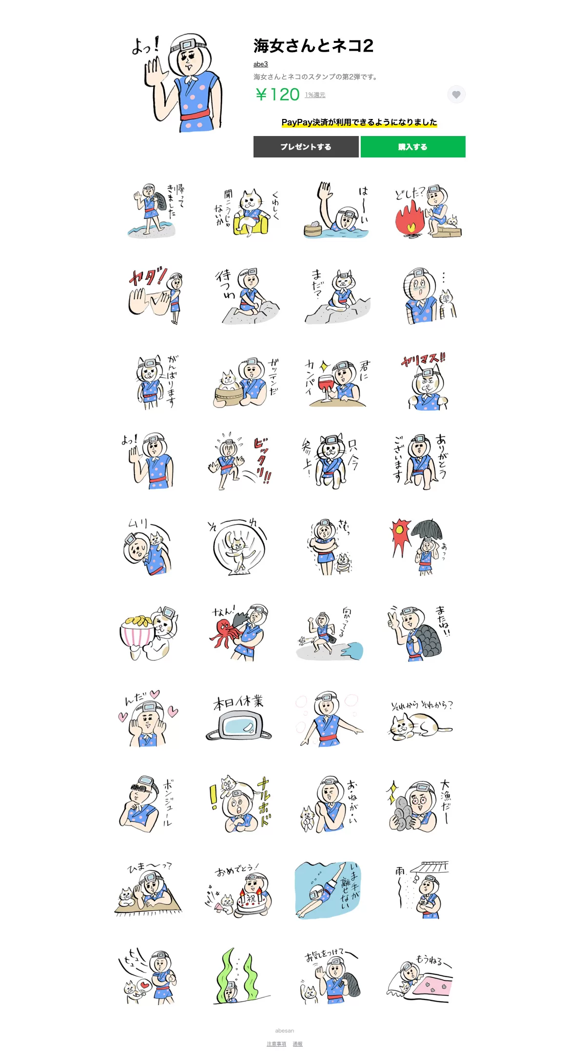 LINEスタンプ「海女さんとネコ」の第二弾「海女さんとネコ2」の発売が開始しました!
