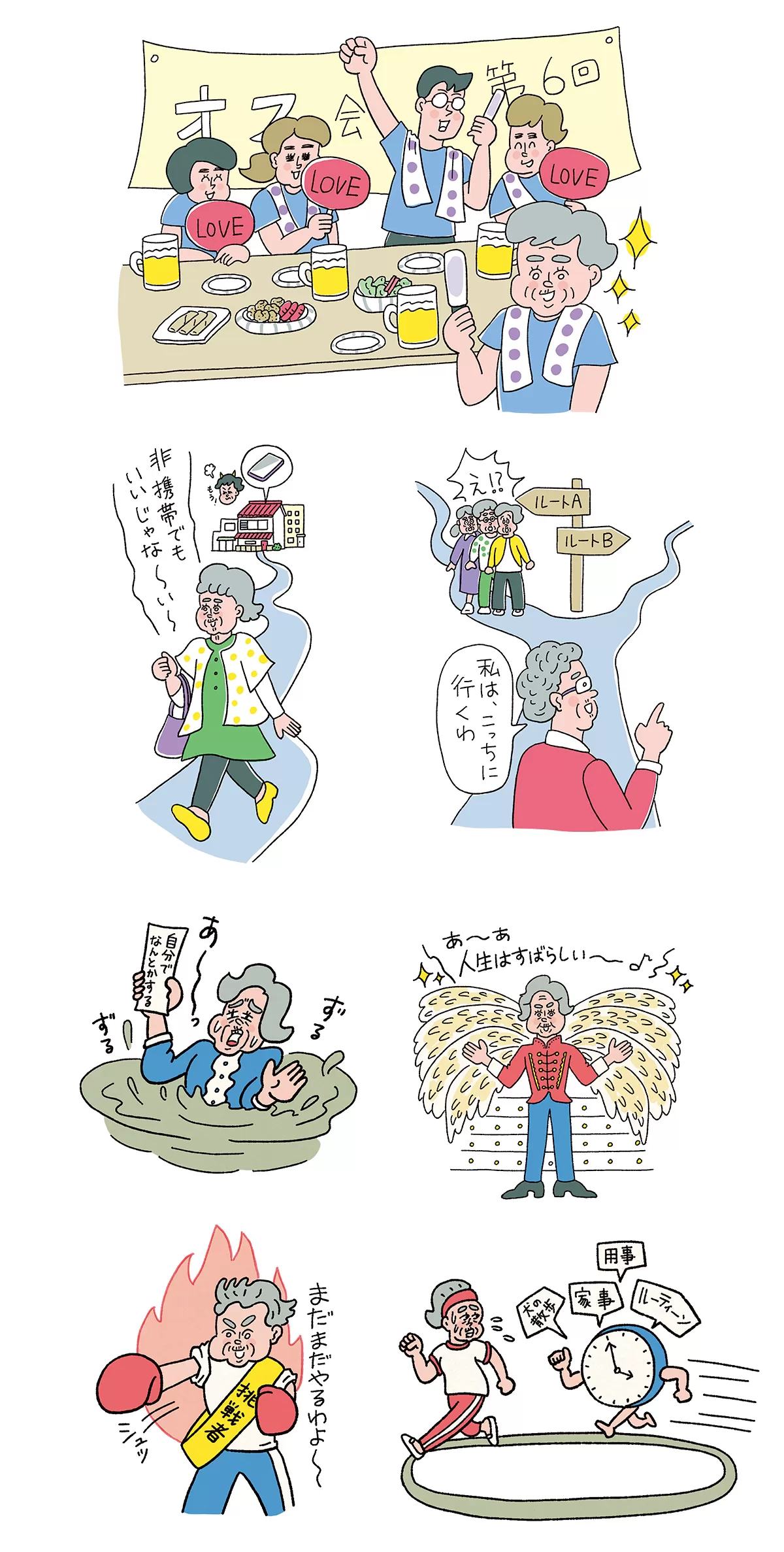 宝島社ムック『60歳すぎたらしばられない100のこと』 2025 6/30 2025年6月30日 宝島社ムック『60歳すぎたらしばられない100のこと』(2025/06/30発売)の挿絵を担当しました。(イラストは一部のみ抜粋) works ハルメク 2025年6月号 オレンジページ 8/2号
