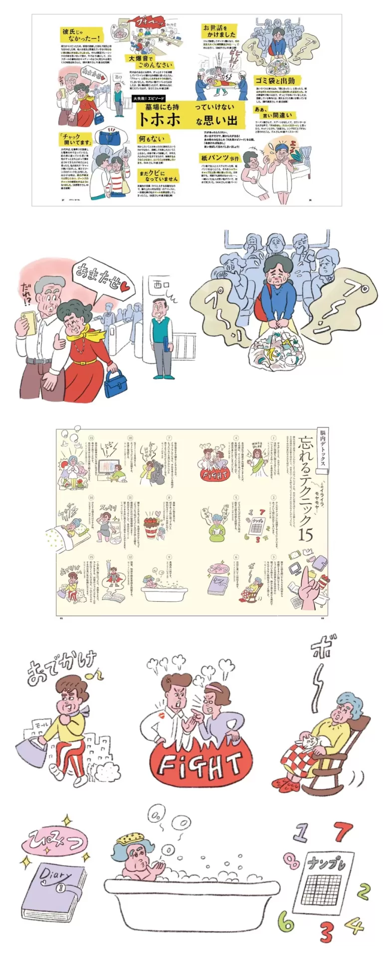 宝島社ムック『60歳すぎたら上手に忘れる100のこと』 2026 1/02 2026年1月2日宝島社ムック『60歳すぎたら上手に忘れる100のこと』(2025/12/23発売)の挿絵を担当しました。(イラストは一部のみ抜粋) works フェリシモ Kraso[クラソ] Early Winter BAILA2・3月合併号
